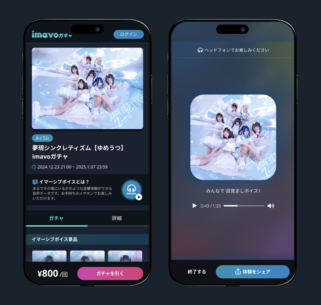 通常の音源では感じることのできない新感覚のサウンド体験。imavoによるイマーシブサウンドは、まさにいまいちばん”推し活がはかどる” 新体験です。